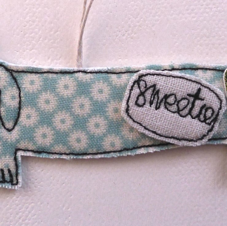 Sausage dog is a happy doggy, who would complement a special gift as a gift tag or make a unique gift in itself.