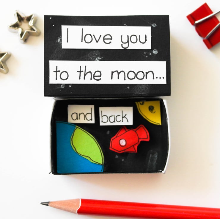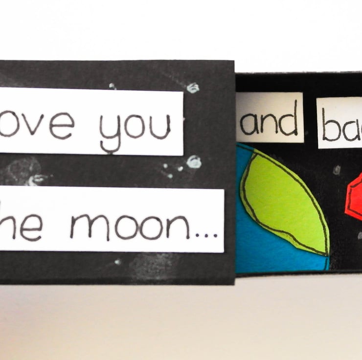 A unique "I love you to the moon and back" matchbox Valentine's, Love card. Be different and give your loved one something other than a card. This is very much a keepsake.