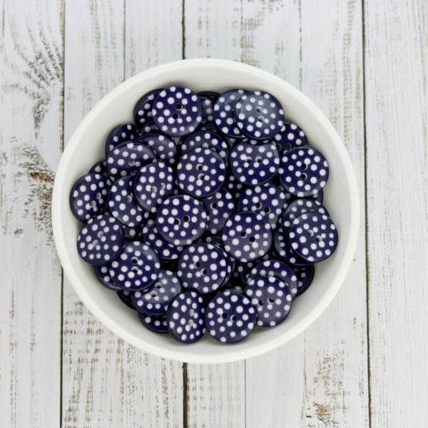 Navy Blue Polka Dot Buttons, 2 hole round resin buttons