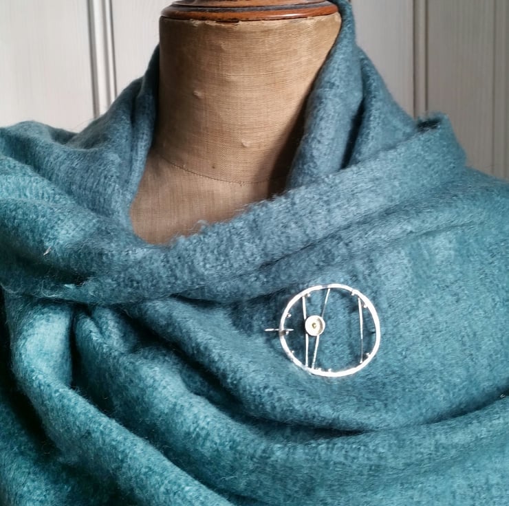 A simple silver bar pin creates a neat fastening. The brooch roughly measures 4.75cm X 4cm.