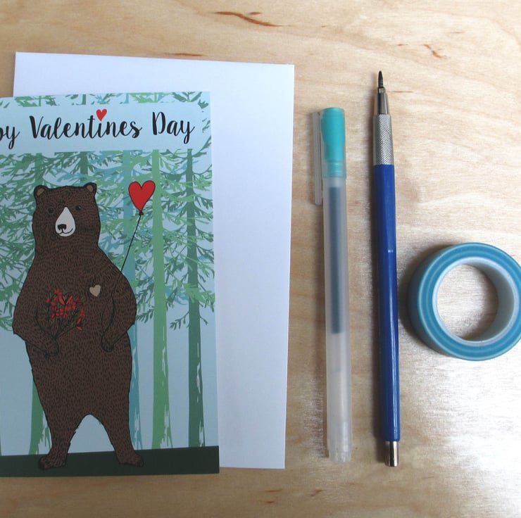 This card was inspired by the idea of a romantic bear! This bear wants to impress his/her partner with flowers and a heart balloon.