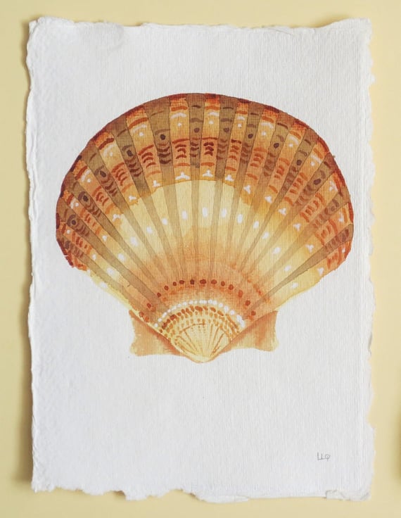 An original watercolour painting of a shell from my collection. Painted in artists quality watercolour on deckle edged paper. The size is approximately 15x21cm or 6x8inch (approx size due to the uneven deckle edge). The painting is signed in pencil in the lower right corner and is ready to ship.