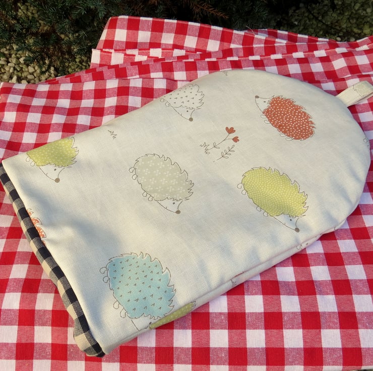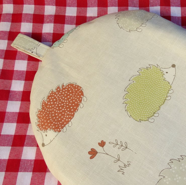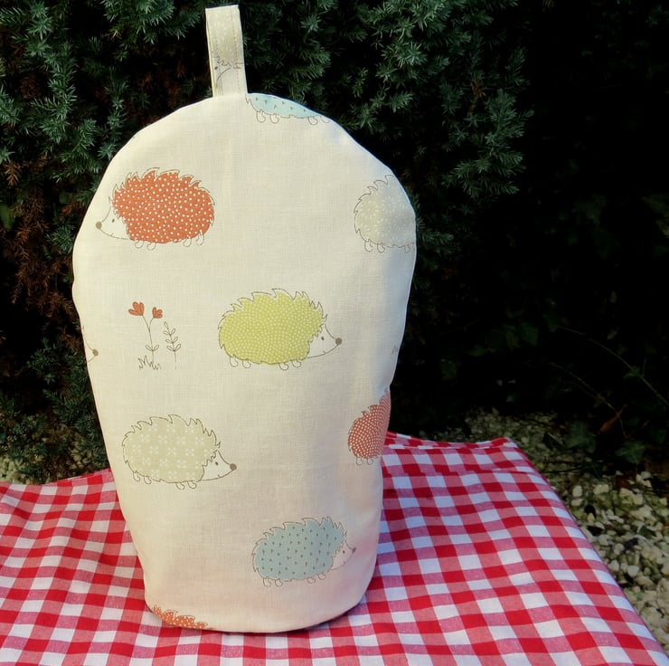 This cafetiere is made from a medium weight cotton, with a whimsical hedgehogs design.