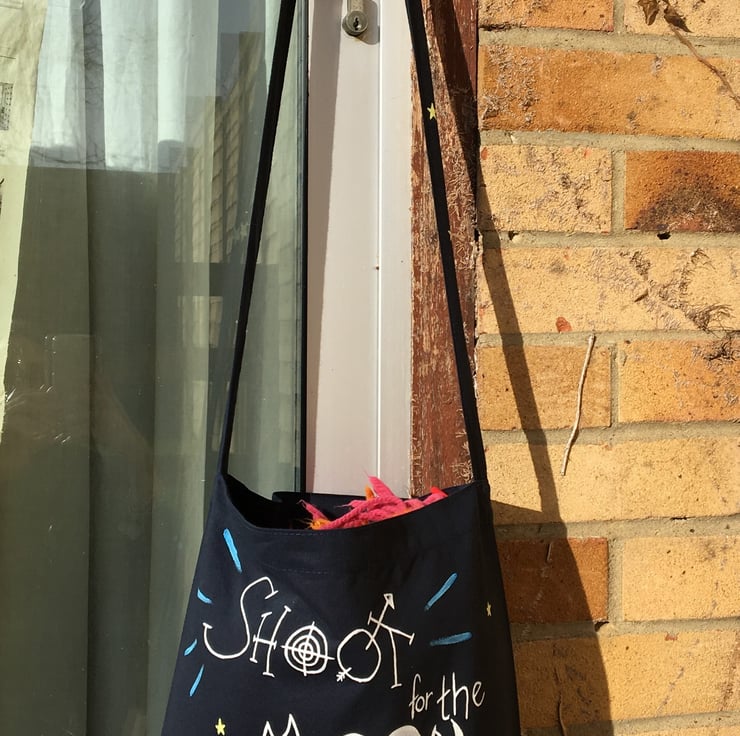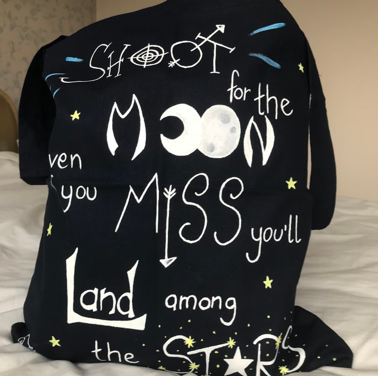 Thank you for looking at this dark blue, cotton tote bag, totally designed and hand painted by me!