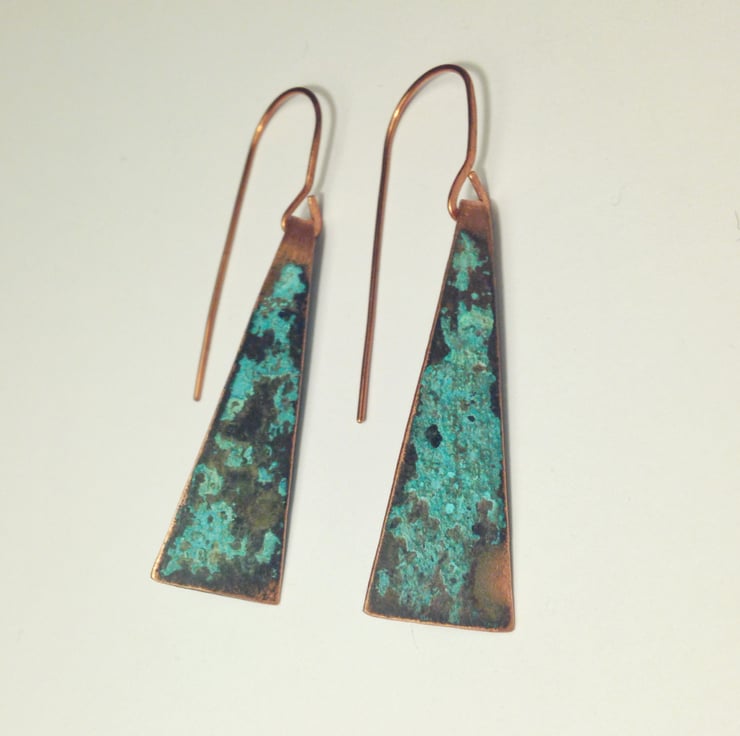These beautiful copper earrings were made from recycled copper pipes hand cut and formed by me in my workshop.