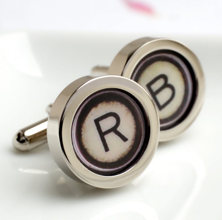 Typewriter key monogrammed cufflinks with two initials. Monogram cufflinks make a very personal gift for someone special and never go out of style. Also available in numbers for significant birthdays.