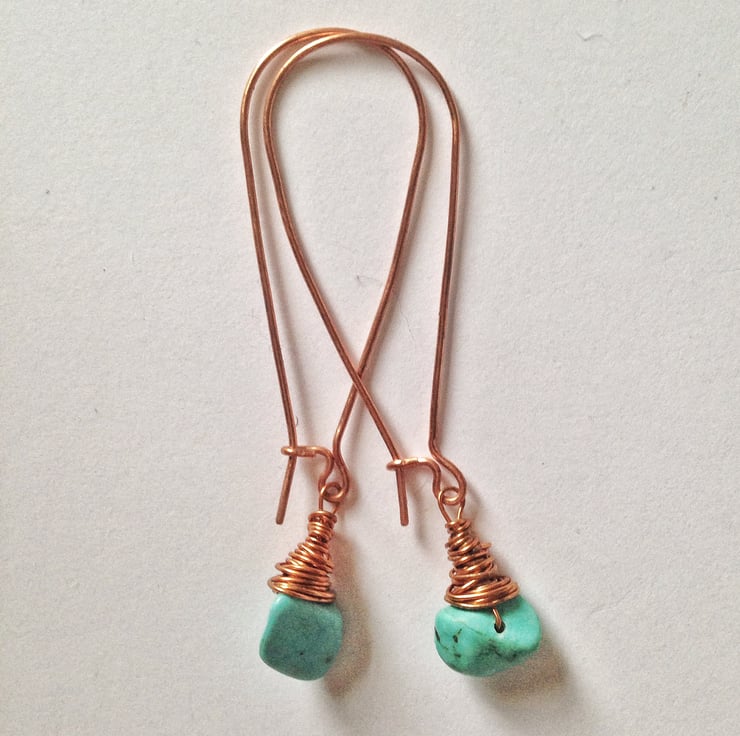 Howlite and Copper earrings with hand made ear wires and amazing turquoise coloured Howlite gemstones