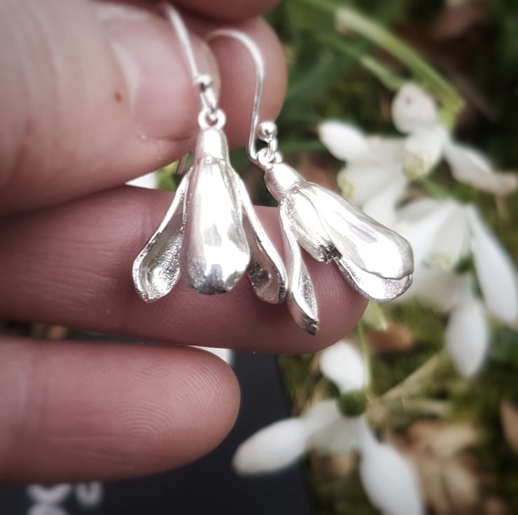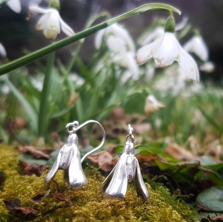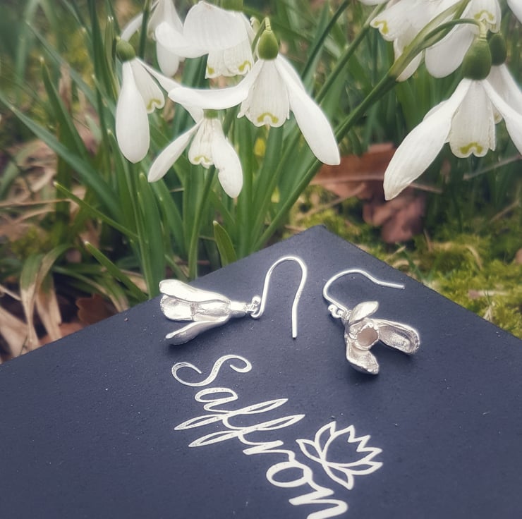 These beautiful snowdrop earrings are solid sterling silver and hallmarked by the Edinburgh Assay Office.