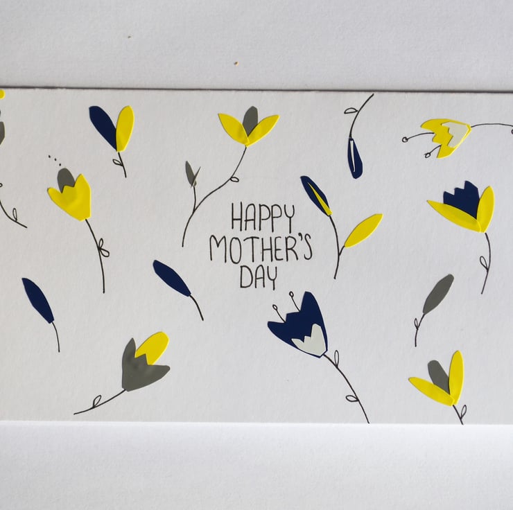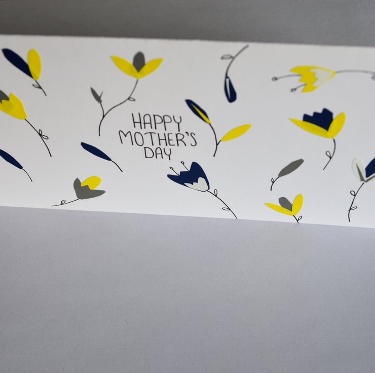 A lovely floral card perfect for a mum who does't go crazy for ditsy and pink. The lovely blue, yellow and grey give a freshness to what we usually associate with mothers day cards and is perfect for a mum who likes simplicity and nature.