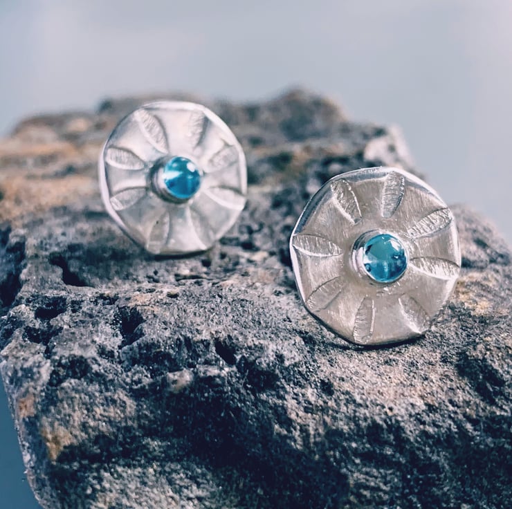 Elegant topaz stud earrings, handmade in my workshop, Topaz studs with their captivating hues of blue gemstones add a unique sophistication to your jewellery style.