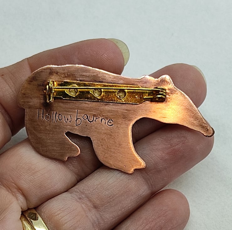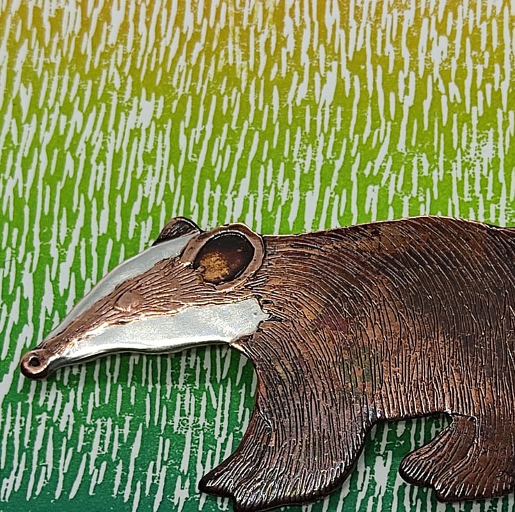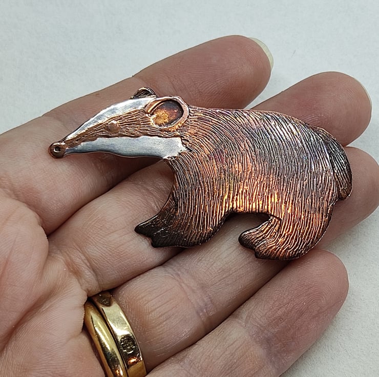 This badger has been patinated to bring out the colour variation in its fur, and has had part of his muzzle silver plated. It has a coat of lacquer to help preserve the patination.