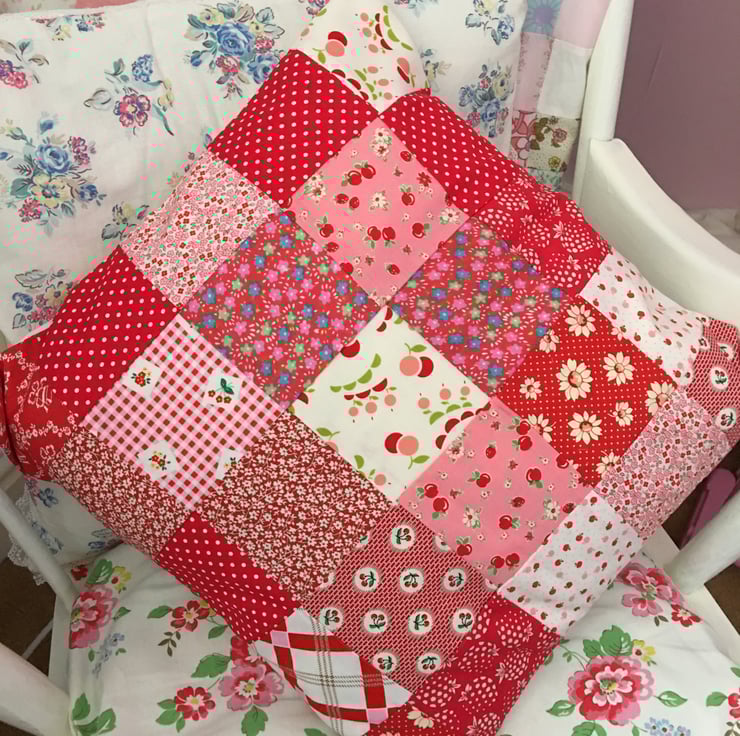 Cushion cover 16" x 16" , made with gorgious cottage fabric with a white cotton envelope back