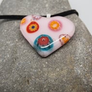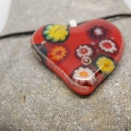 This quirky fused glass heart would make a great Valentine's gift, or indeed for a loved one any time of the year. It has been lovingly made in my studio by fusing layers of glass together, shaping the fused pieces by grinding and then fire polished to achieve a smooth finish. It comes with an 46cms (18") black thong and is 4cms (1.5") by 4cms (1.5")