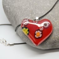 This quirky fused glass heart would make a great valentine's gift, or indeed for a loved one any time of the year. It has been lovingly made in my studio by fusing layers of glass together, shaping it by grinding and fire polished to achieve a smooth finish. It comes complete with a 46cms (18") black thong and is 4cms (1.5") by 4cms (1.5")