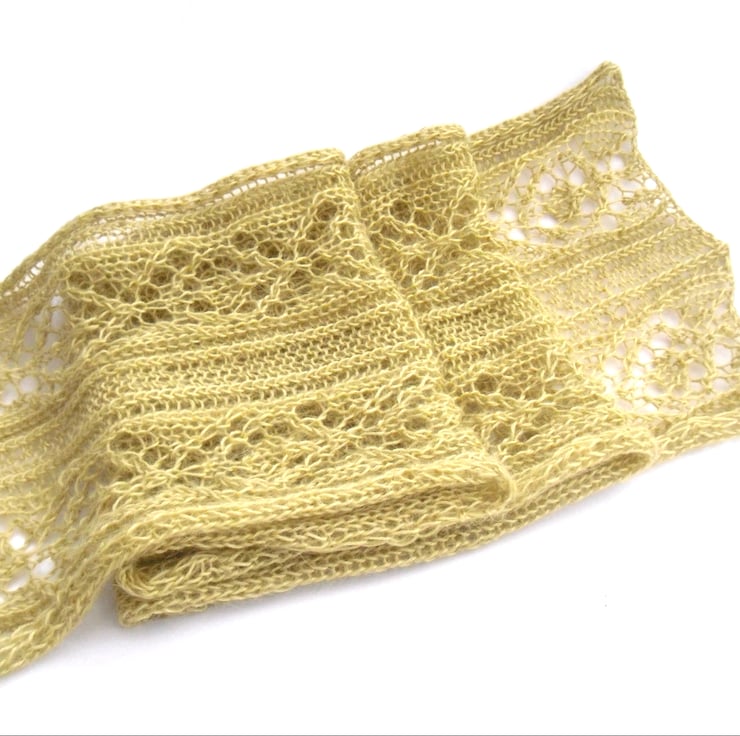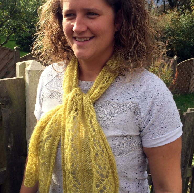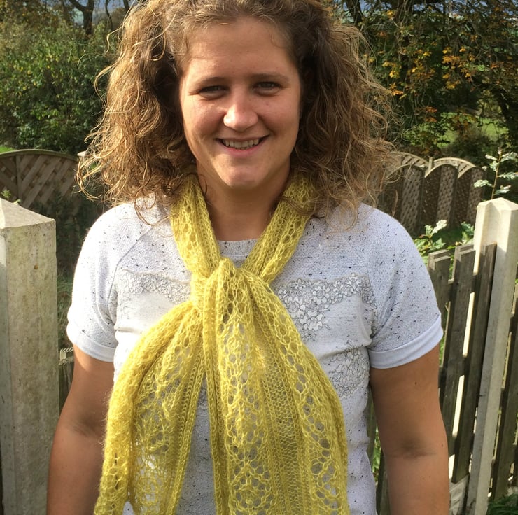 This beautiful lace scarf could easily be knitted by you. Full written and charted instructions are included in this pattern.