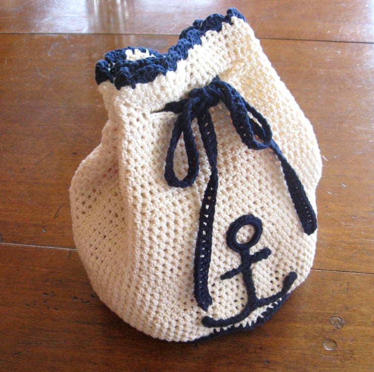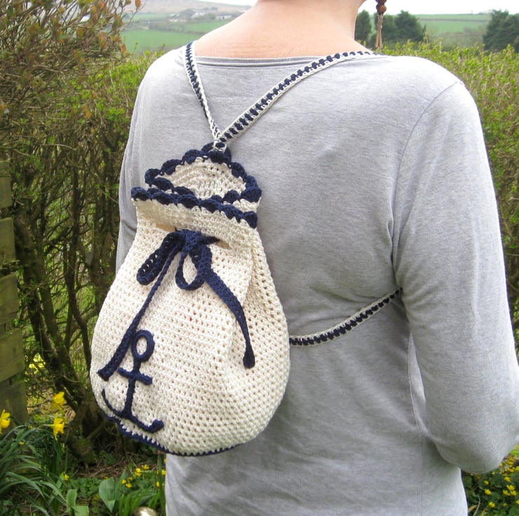 The pattern gives you step by step detailed instructions for all parts of the bag covering 10 pages and has 35 full colour photographs to help you. It also includes instructions for the anchor motif which could of course, be used in other projects.