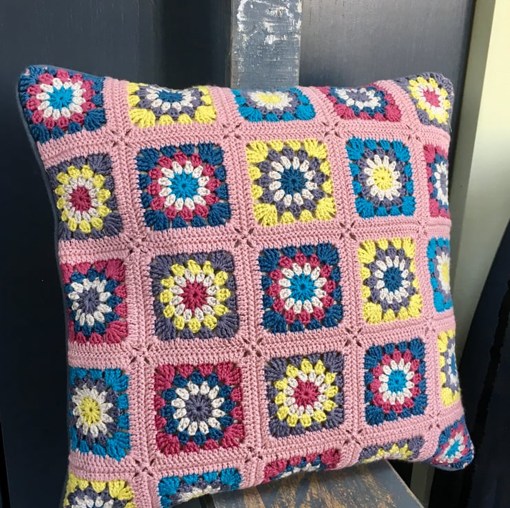 Crochet evokes nostalgia and provides instant colour, charm and texture. This lovely cushion is no exception and the stunning vintage tones would look good in any home.