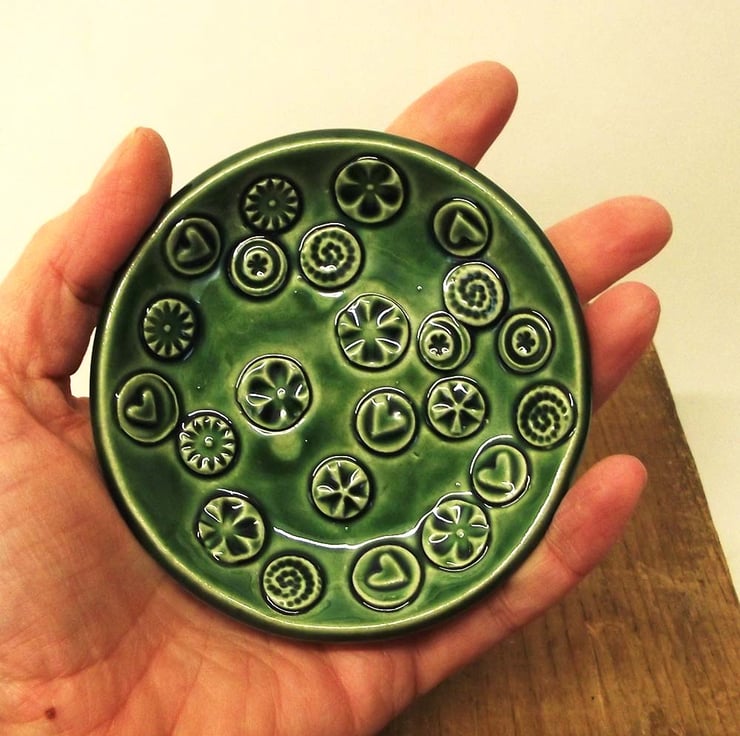 Useful for all sorts of things, it could be a candle dish, a change dish, somewhere to keep your rings when you wash up, a cupcake plate or just a little decorative item.