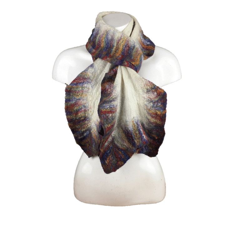 Perfect teamed up with any outfit, smart or casual it would make an ideal gift. It is supplied packaged in a lovely gift box as shown with labelling explaining the nuno felting process and providing washing instructions.
