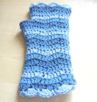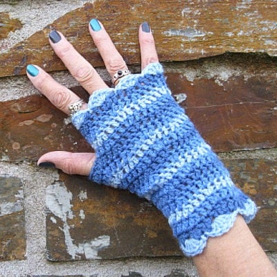 This wavy, zig zag pattern is my own design and I have crocheted these fingerless gloves in three shades of blue, using a 4.50mm hook but you can use just one colour or a mix of colours to make them just for you. They'd look great in rainbow stripes too, your local team colours or to just use up your odds and ends.