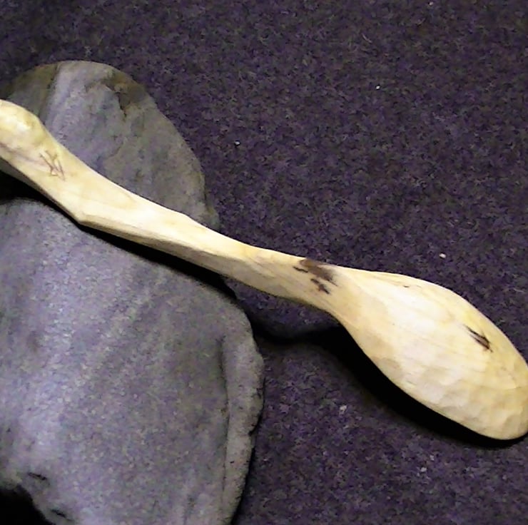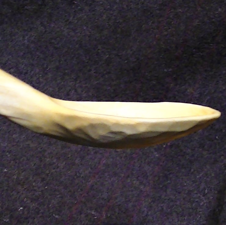 Tulipwood was a bit of an out of the ordinary choice but once the spoon was finished it seems to have proved itself. Even after oiling the pale colour remained and a few olive coloured grainy streaks in the bowl gives it a bit of character.