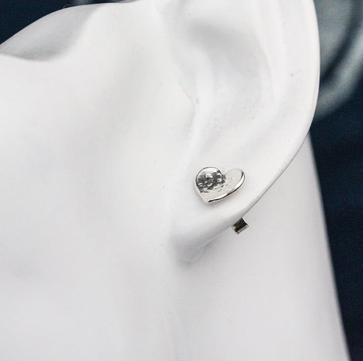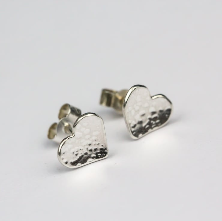 Handcrafted silver heart stud earrings. Great for everyday wear.