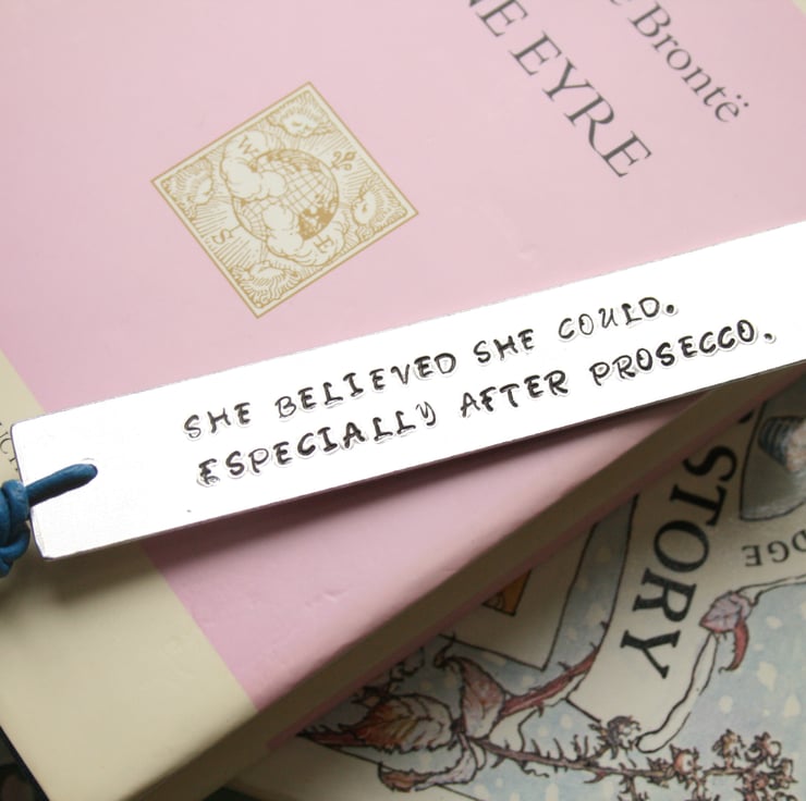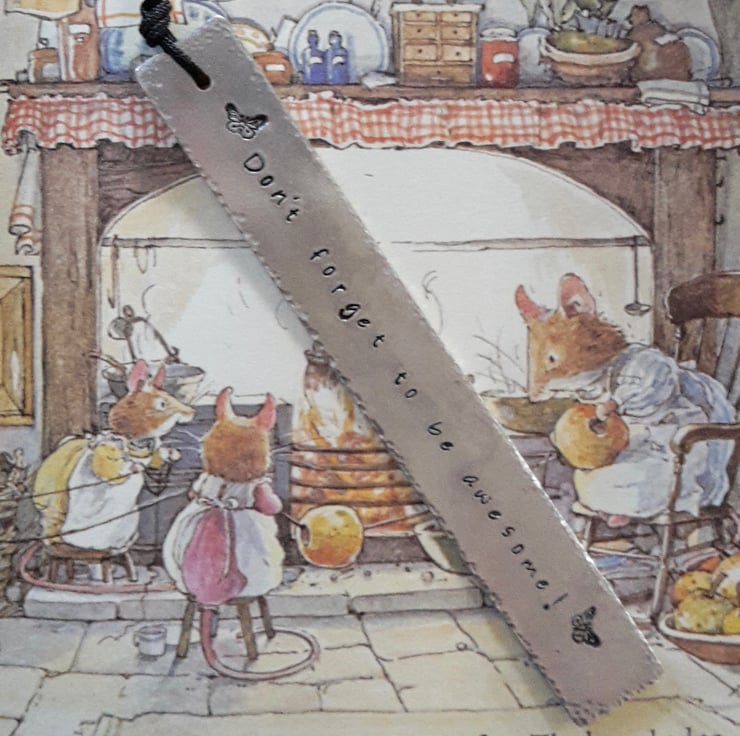 I love to work with customers to create their perfect bookmark which I will hand stamp with a meaningful quote or phrase onto aluminium. The bookmark will measure approximately 15 cm long and roughly 1.5 cm wide although this will depend upon the wording to be hand stamped or I can cut it to fit your requirements.