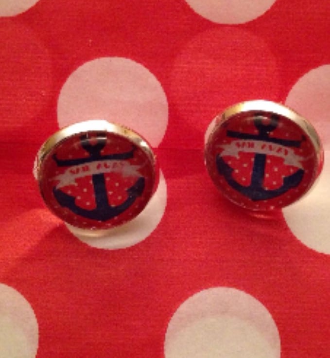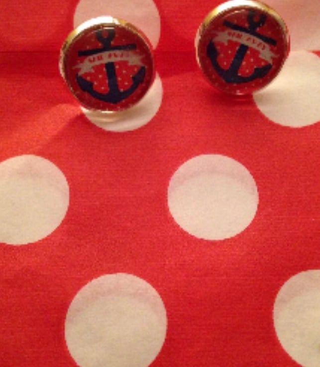 These red and blue nautical anchor cabochons sit in 12mm silver plated settings.