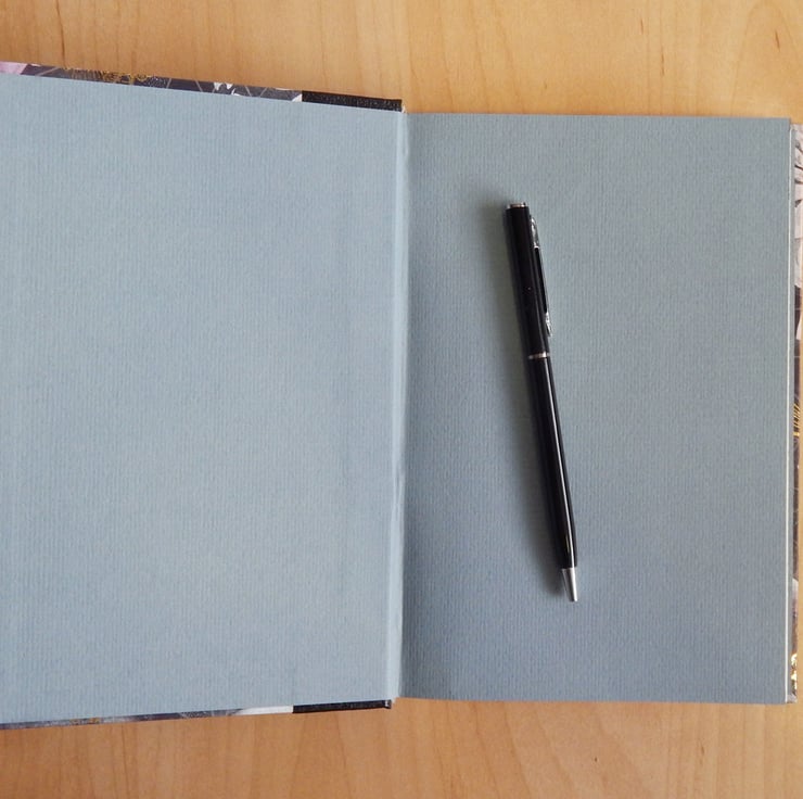 The end-papers are in smoky blue art paper, with a felt textured finish.