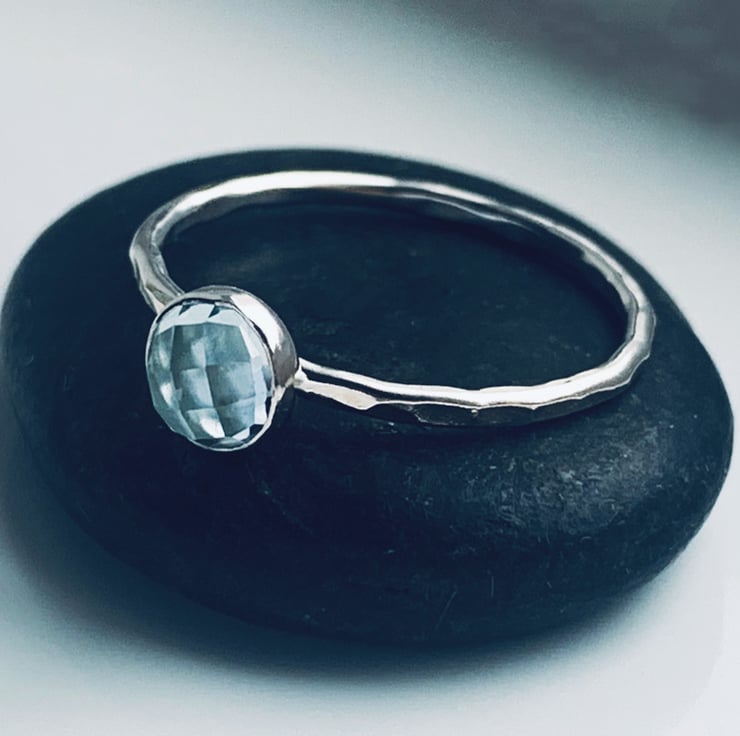 A light skinny ring with a 5 mm gemstone. Beautiful on its own or a perfect addition to a