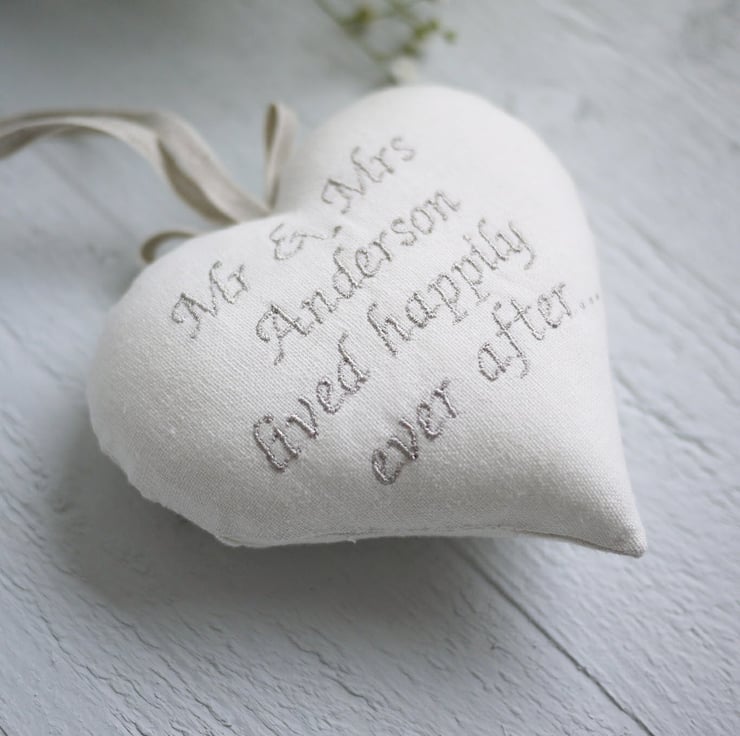 wedding day gift,personalised lace and linen ivory heart,wedding present