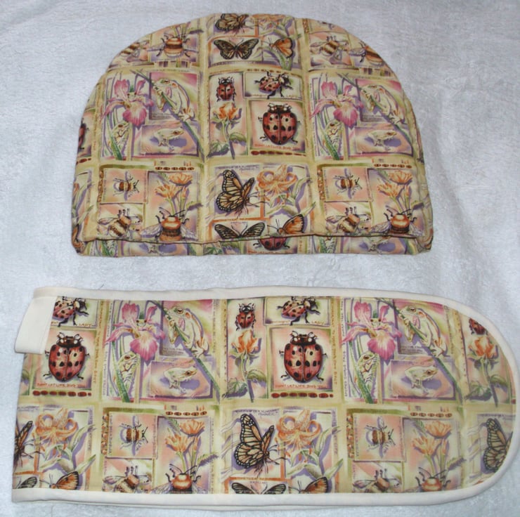 Butterflies, Bugs and Bees tea cosy and oven glove set