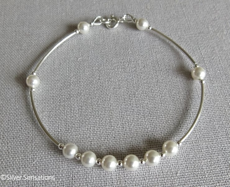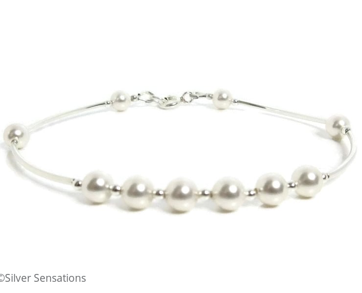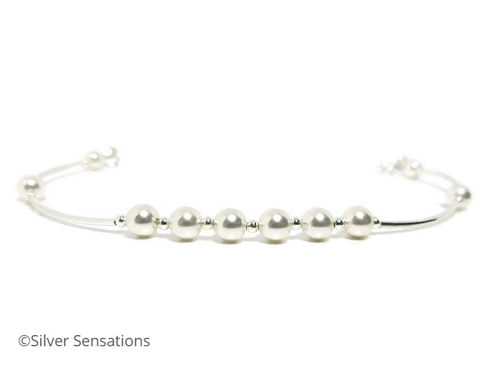 For this elegant handmade pearl bangle bracelet I've used 5mm white Swarovski Pearls from the Swarovski Elements range.