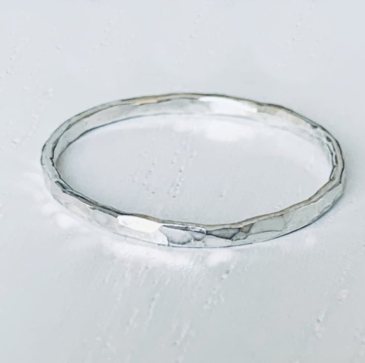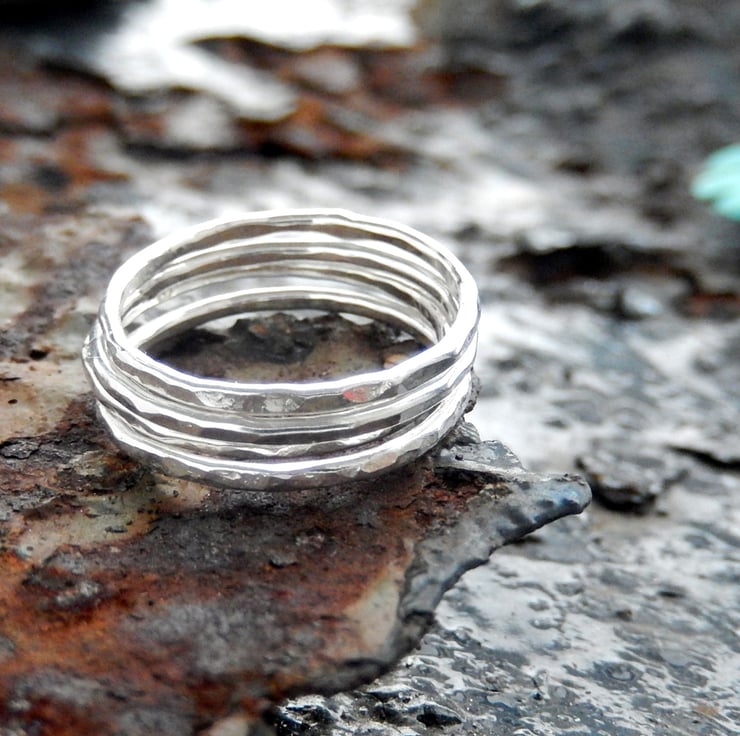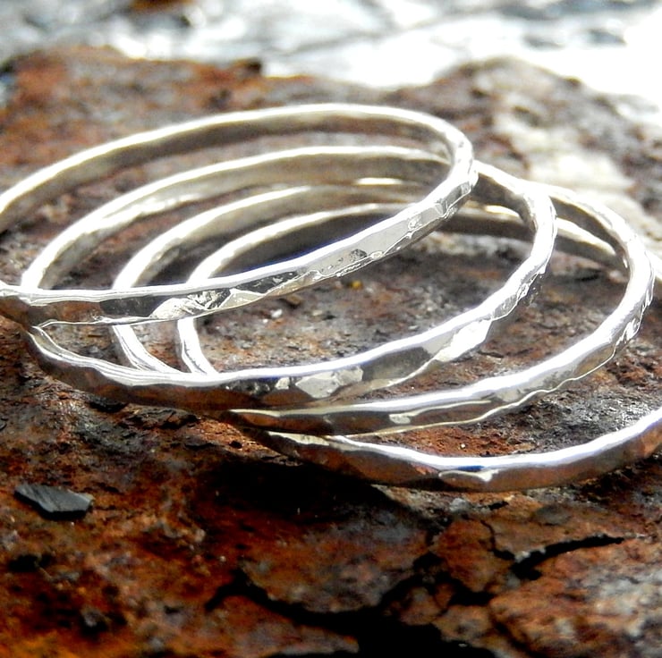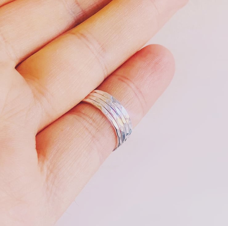 Textured stacking rings have been hammered textured polished tumbled and polished again for strength and extra sparkle!