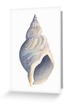 A blank greeting card reproduced from my original watercolour painting of a whelk seashell found on Bournemouth beach. Each card measures 6x4 inch (10x15.5cm).