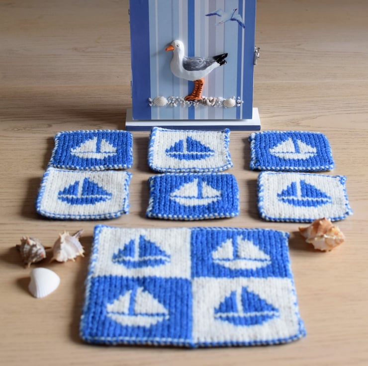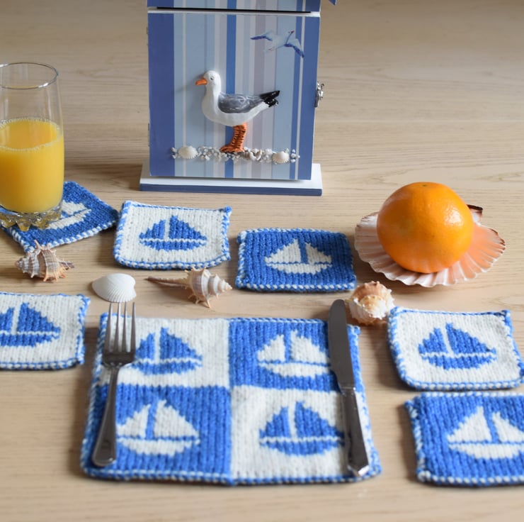 Knitting Pattern for Boat Coasters and Table Mat. Digital Pattern