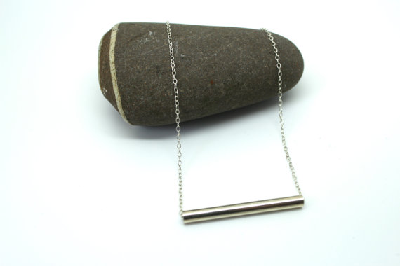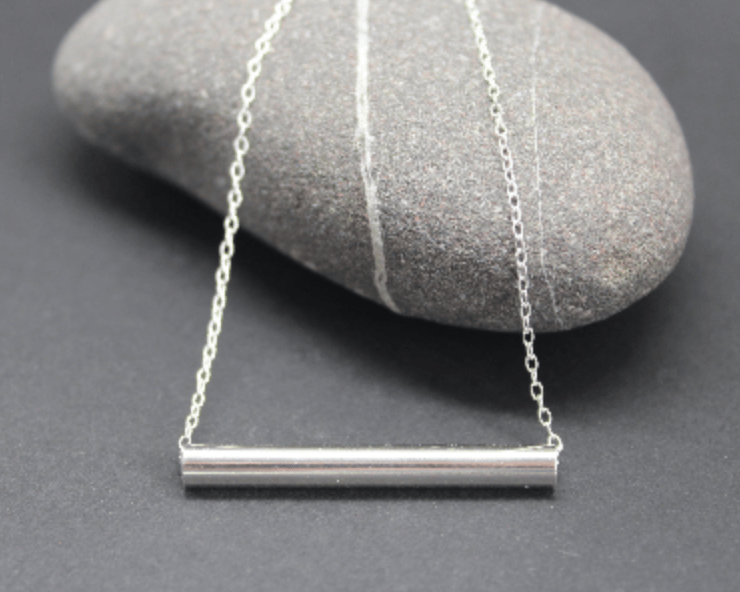This simple necklace is made from a 35mm sterling silver tube which hangs on an 18" trace chain.