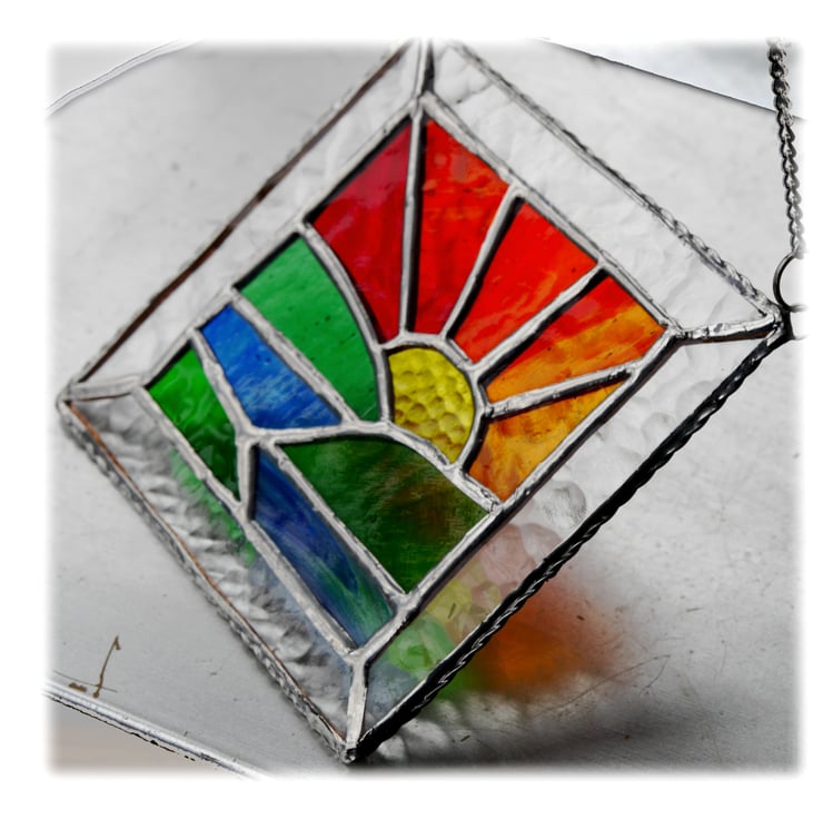 This is beautifully bright and cheerful and casts lovely colours when it hangs in the light of a window.