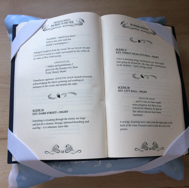 Elasticated corners hold the book in place while you read, the large pocket to the back of the cushion can be used to store your book and other items.