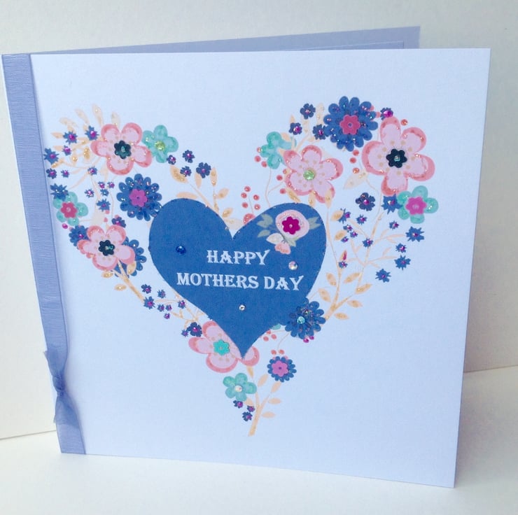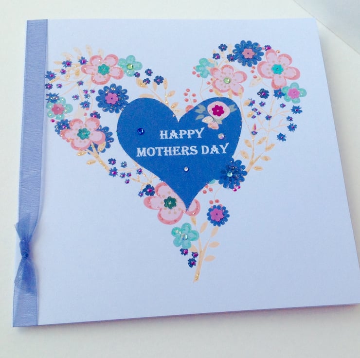 The listing is for a digitally designed Mother's Day Greeting Card, in a pretty floral heart Design.