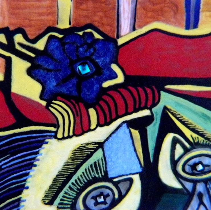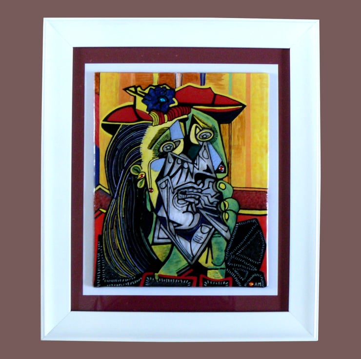 Handmade Fused Glass Picasso 'Weeping Woman' Painting