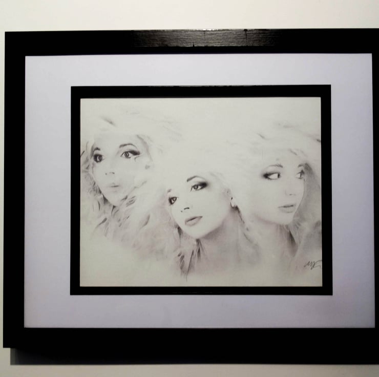 OOAK original charcoal and pencil artwork signed and framed. Approx size with frame 14 inches by 11 inches.