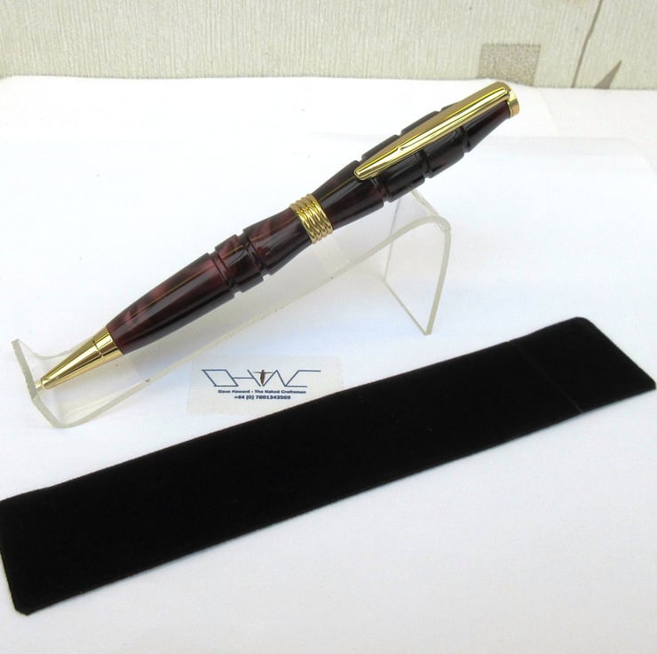 For sale here is a beautiful hand crafted Ballpoint Roller Ball Pen personally turned by myself from a rich, shimmering, translucent colour acrylic. In this case predominantly Dark Chestnut Red.