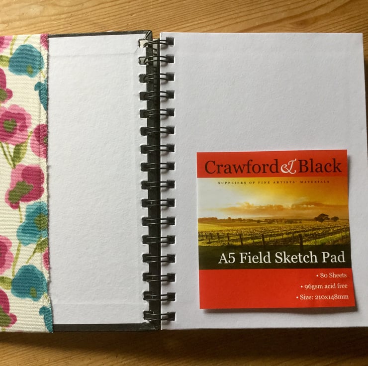 The A5 size journal itself is spiral bound with hard covers and contains 80 sheets of plain white acid free paper of a quality suitable for writing or sketching (96gsm). This standard size journal can be easily obtained should you wish to replace it when the original journal is filled.
