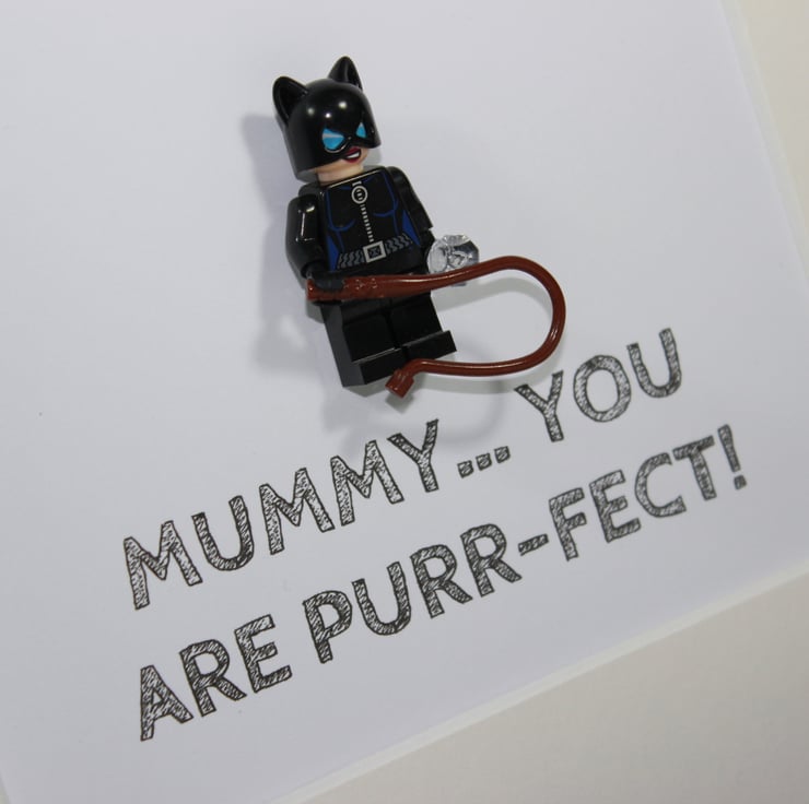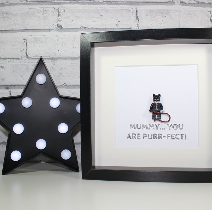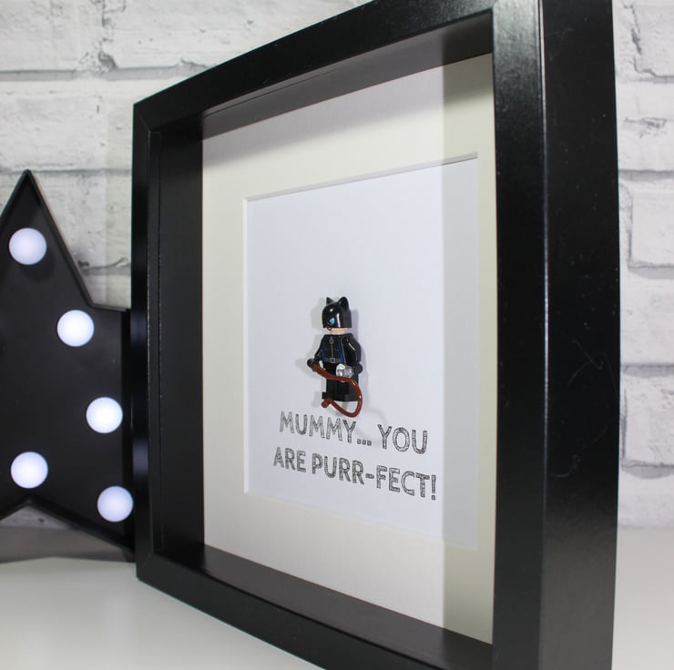Here we present our fabulous Catwoman minifigure - she has been mounted in to a deep box frame and comes complete with a great bit of wording underneath - you can specify whether this is for mum or mummy (if you need or want anything different then just get in touch). This really is the ultimate way of letting her know that she really is purr-fect!