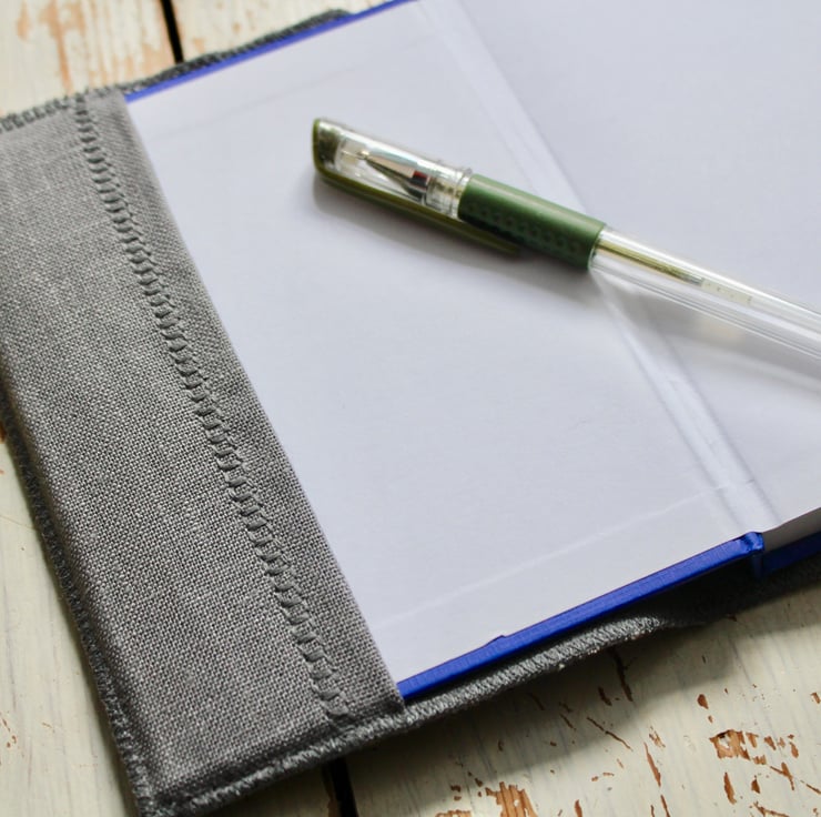 Inside the cover is a heavy cream cotton fabric, making it nice and sturdy. An overstitch of matching grey thread keeps the cover looking sharp and tidy. There is also a similar stitch on the inside of the cover.
