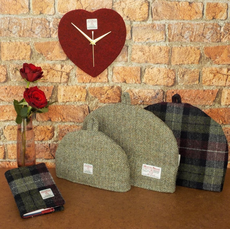 It is lined in white cotton fabric, and wadded with polyester to keep your tea warm. The Orb label, your guarantee of authentic Harris Tweed fabric is proudly displayed.