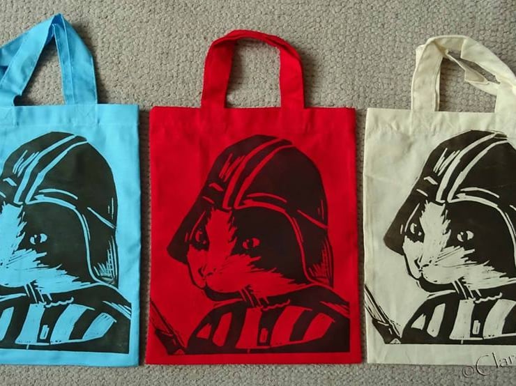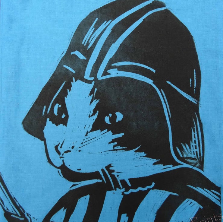 Darth Vadar Cat Tote Hand Printed Turquoise Mini Tote Shopping Bag