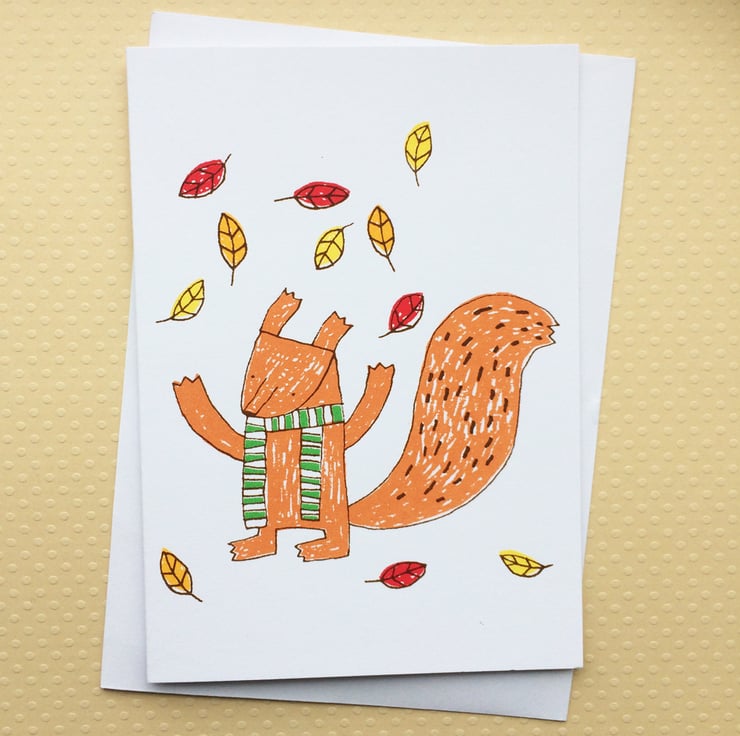 This listing is for one card and white envelope only. The design is about 9cm wide by 11cm and has been screenprinted by hand in six colours on to the middle of a white card.