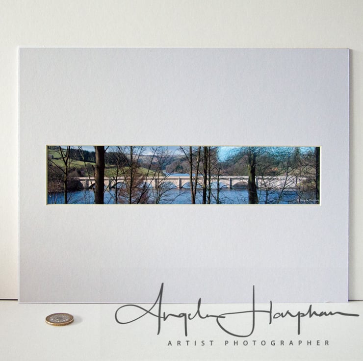 A fine art panoramic photograph of the Ladybower reservoir and the viaduct that carries the A57 between Sheffield and Glossop via the Snake Pass in the Derbyshire Peak District.
